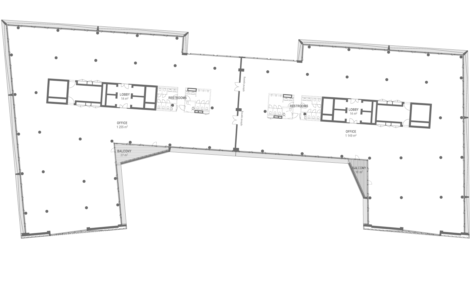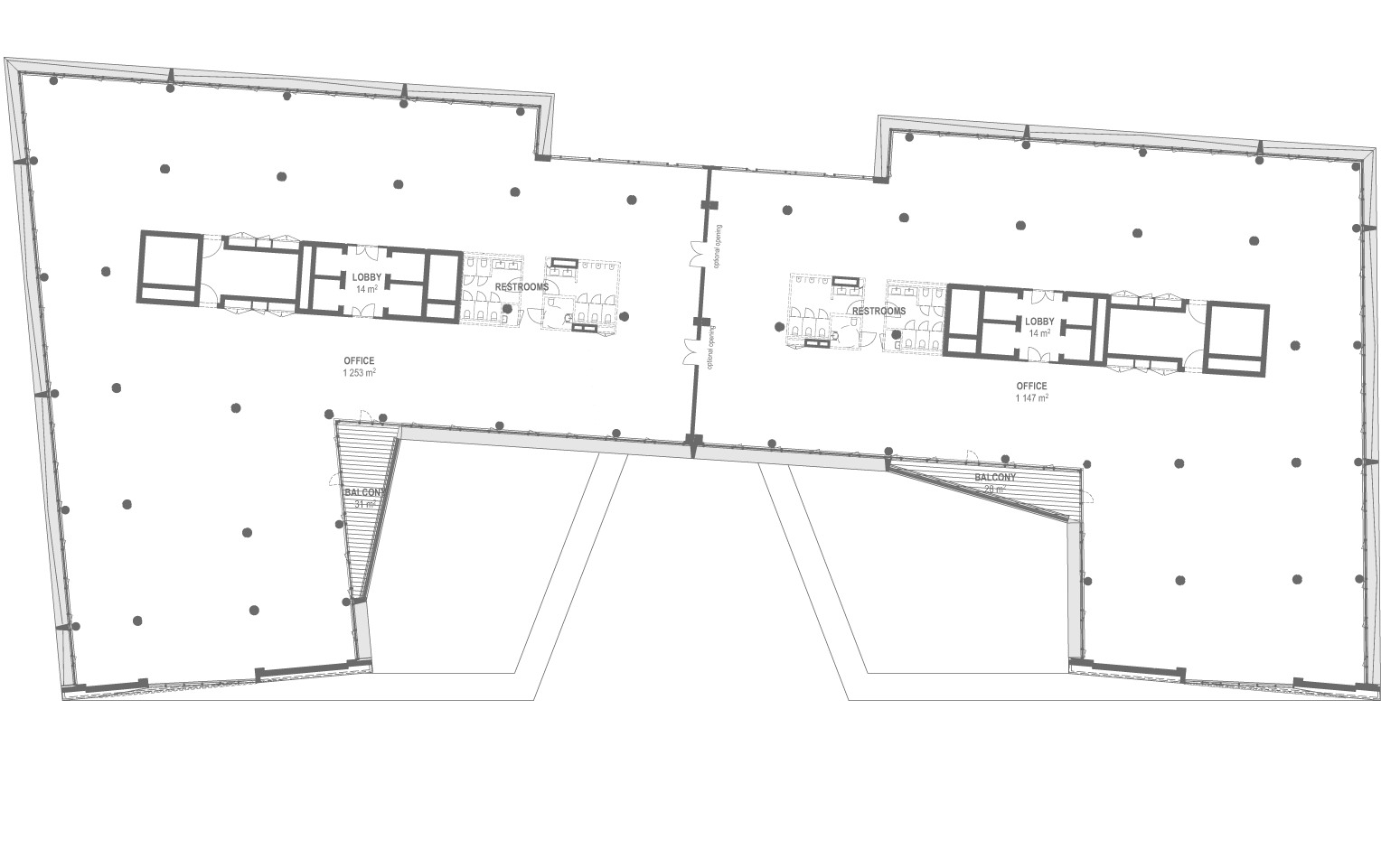 Leasable area from 1,200-2,400 sqm per floor plate, flexible partitioning